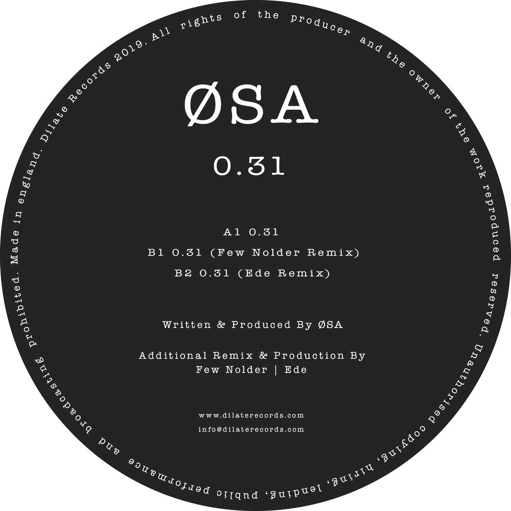 ØSA‘s EP ‘0.31‘ will be released on Dilate Records May 6th, 2019.